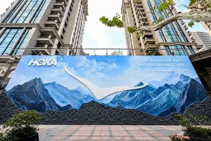 HOKA在新世界竖起了巨大的山峰围挡。