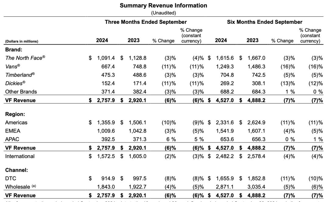 2025年第二季度,北方母公司VF发布财务报告 来源:VF