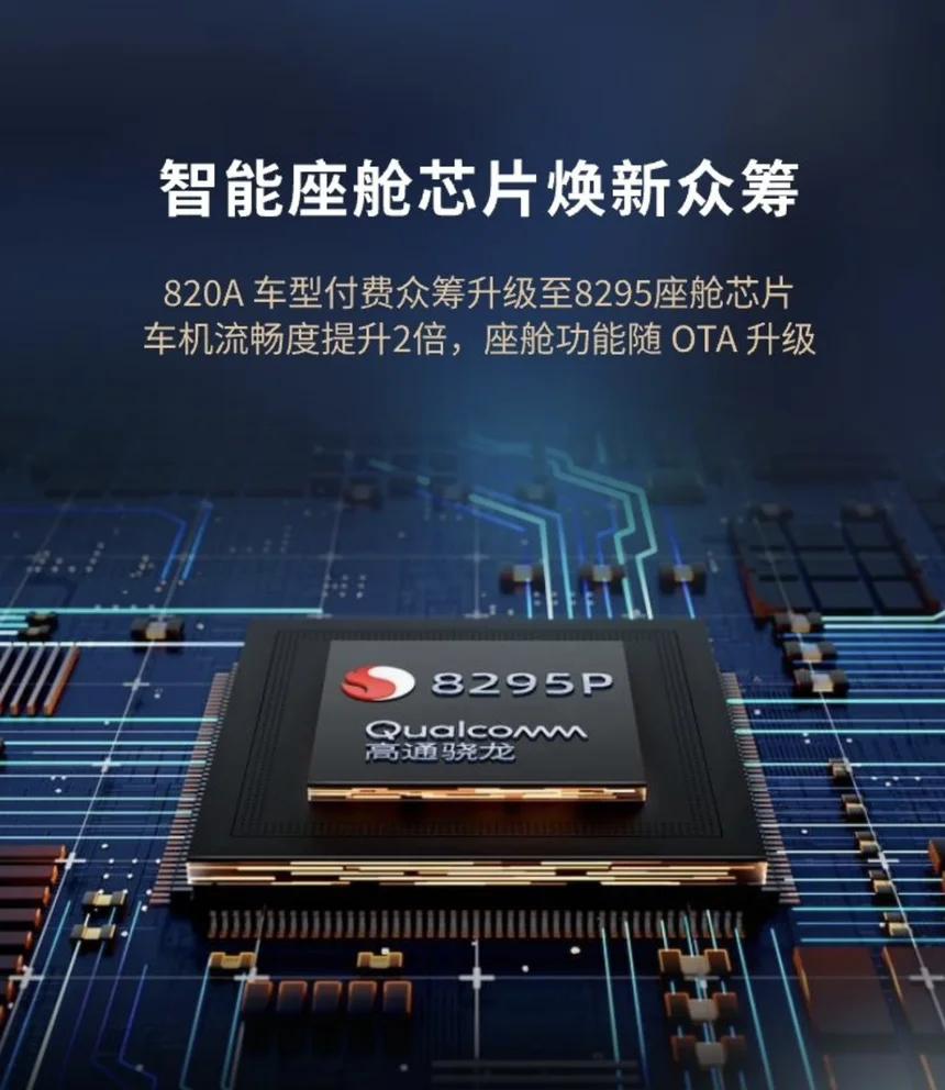 上个月,小鹏汽车众筹换芯片,P7车型三天内达到众筹目标。老车主可以将驾驶舱芯片从高通820A升级为新型8295,花费4999元。