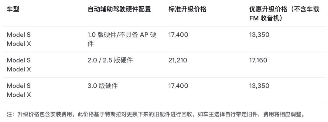 此前,特斯拉已经提供了旧硬件付费升级服务,价格感人。