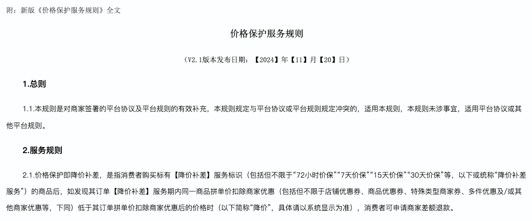 品多多价格保护服务规则