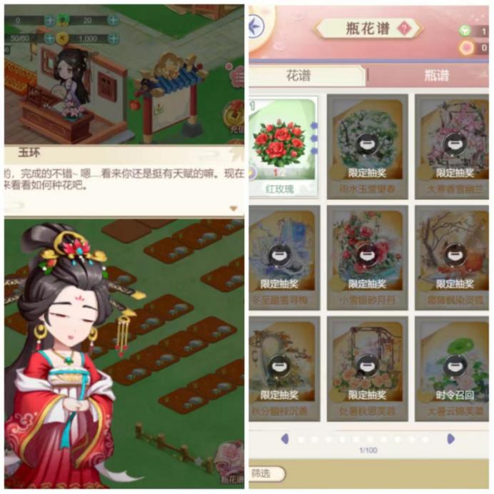 女性模拟国风管理游戏,插花主题,这款游戏已经上线两年了。以花卉栽培和种植为核心游戏,玩家可以通过种植种子来获得花卉,花卉可以用于插花和销售。一些稀缺的种子只能通过抽奖获得。女游戏跑道还有待挖掘。目前数量不多,头部产品还没有出现。