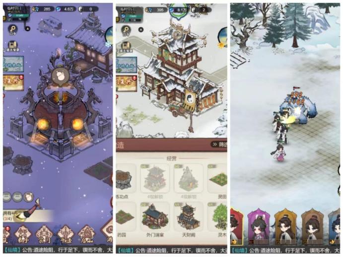 模拟经营 放置战斗,值得一提的是,它的主题是目前火爆的冰雪主题和国内非常火爆的仙侠主题。这个小游戏作为2022年发布的老游戏,可以算是运营的榜样。从23年初开始,以半年为周期,将《武东干坤》联系起来、《遮天》、《道怪仙》、热门的网络小说和游戏,如轩辕剑三外传:天之痕。在近期借着「冰雪主题」火热,上线了「暴风雪来袭」新版本,这可能是排名上升的原因之一。
