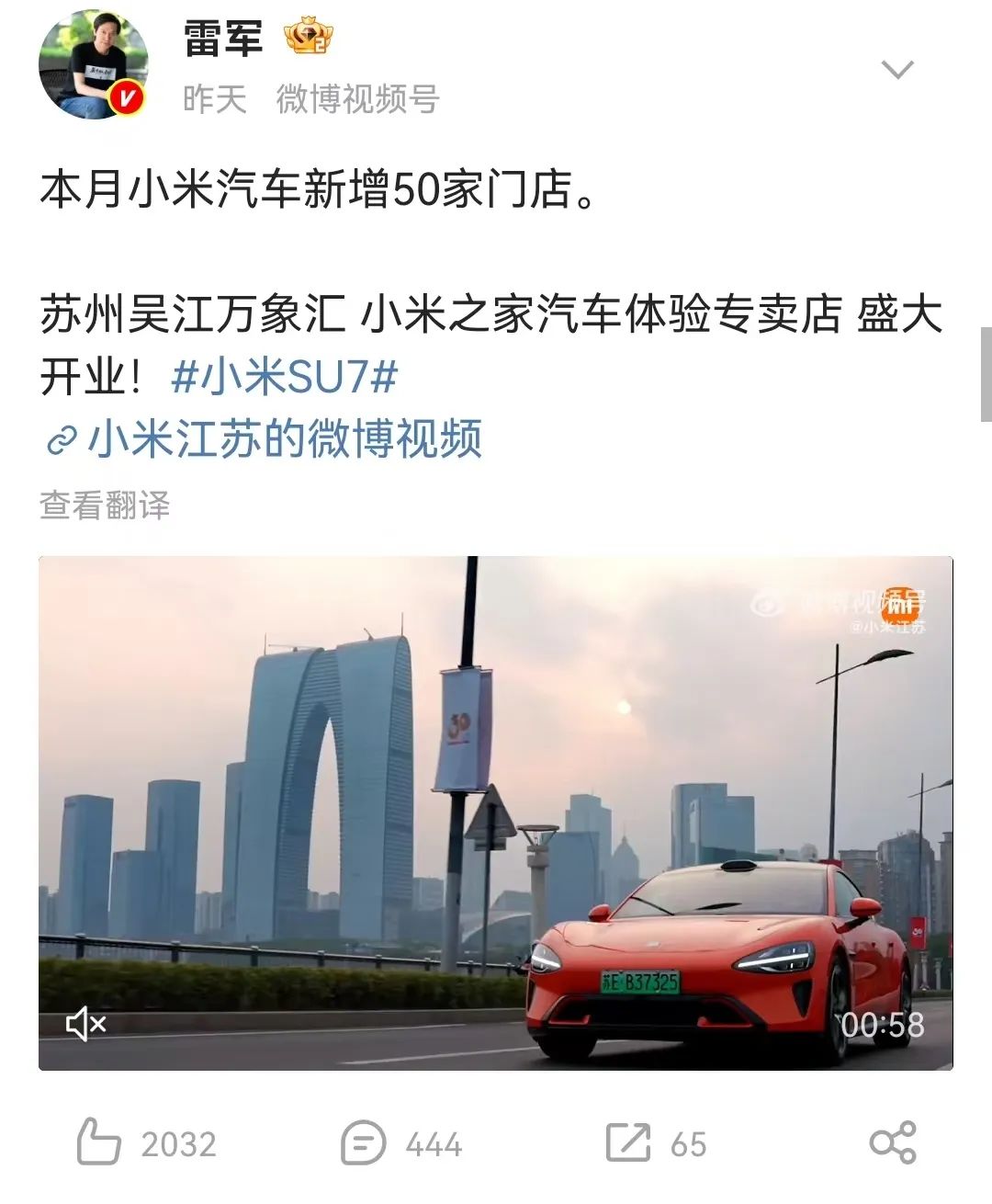 有意思的是,就在小米YU7公布“身份证照片”的前一天,雷军在其社交平台上发布了视频和文字,称小米汽车本月将新增50家门店,预计将扩大乌鲁木齐、南通等19个城市。