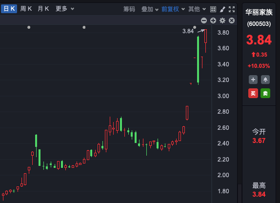 早上房地产股集体上涨,板块指数首盘成交量一度直线上涨近3%。华丽家族开盘后仅2分钟左右就涨停了,股价创下3年半新高,近6个交易日涨停5度;栖霞建设、津投城市开盘、上实发展等。也有快速涨停,均创下阶段性新高。