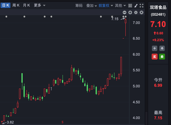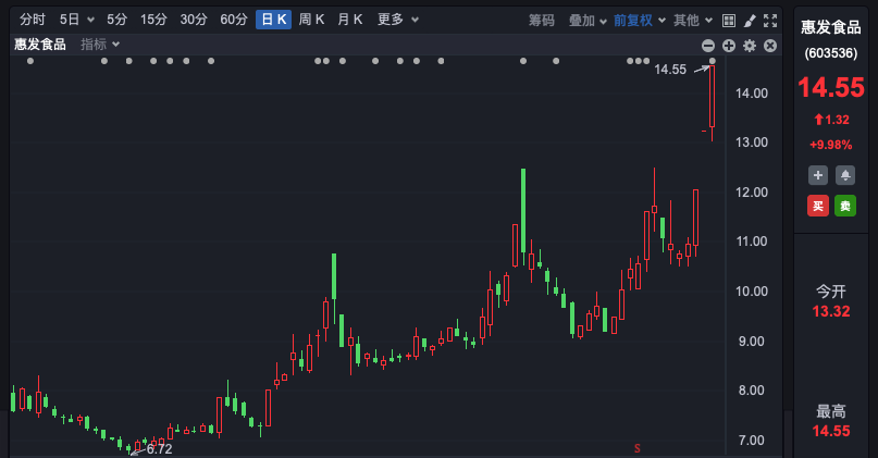 此外,节日消费集中的食品行业、商业连锁、猪肉、白酒等行业也在强势上涨,皇台酒业、李子园、东百集团、天域生物等日线涨停。