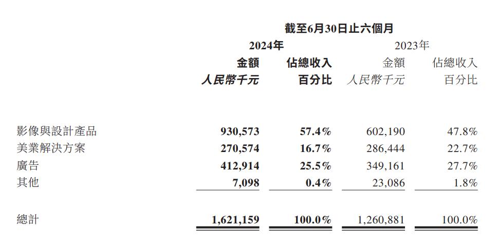 从2019年开始,美图的主要盈利支柱再次从“智能产品”转变为“在线广告”,主要靠其美图秀秀、美颜相机等产品赚取广告费和会员费。根据财务报告数据,美图公司每月使用2.57亿用户,上半年,美图公司(13577).HK)总收入16.2亿元,同比增长28.6%;其中,广告收入达到4.1亿元,比去年同期增长18.3%,占总收入的25.5%。