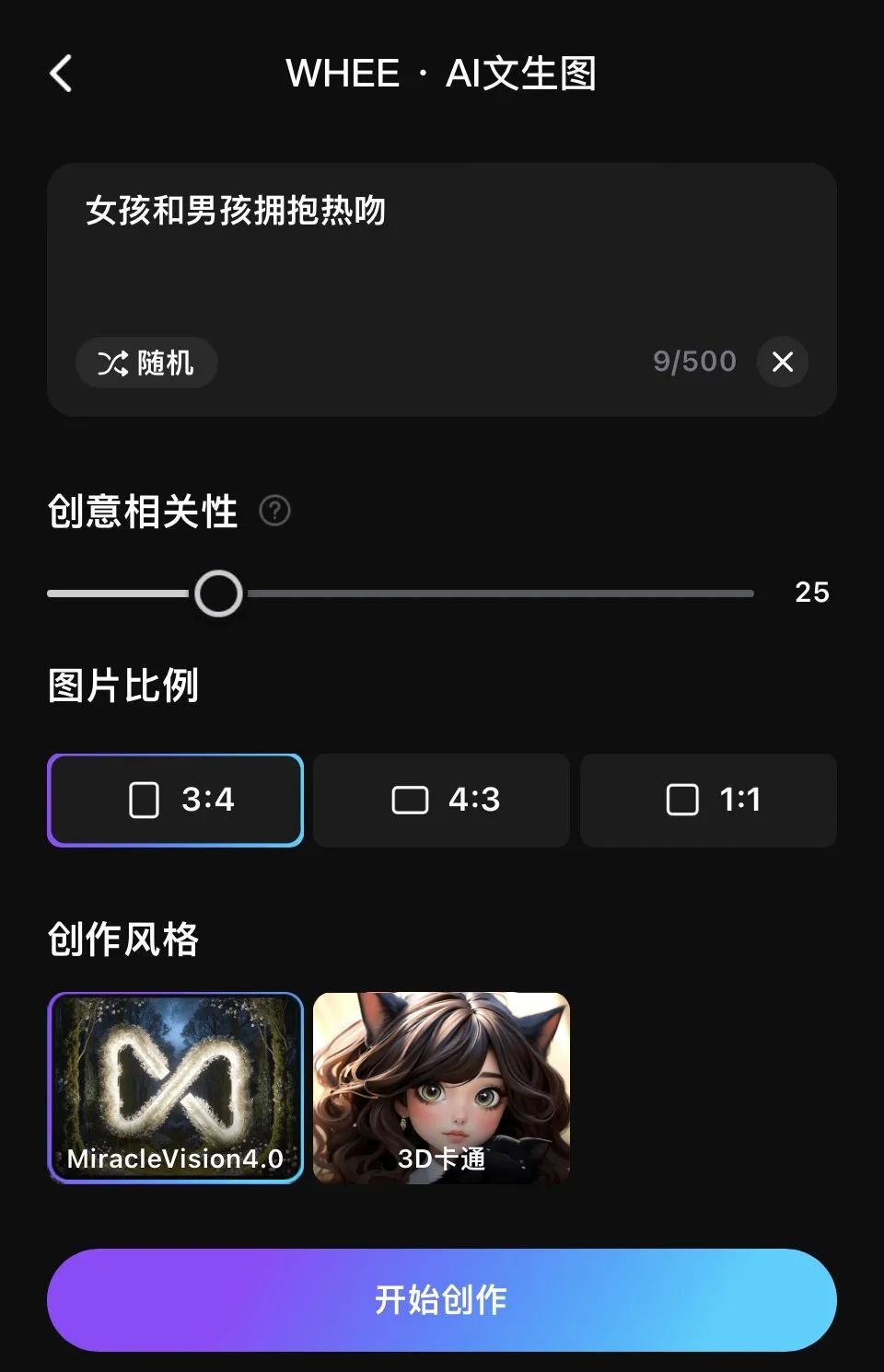 “趣解商业”观察到,美图秀秀图片的尺寸和风格选择很少,而智谱清言、豆包等类似AI应用不仅可选风格更丰富,还支持光源、镜头、构图等细节。