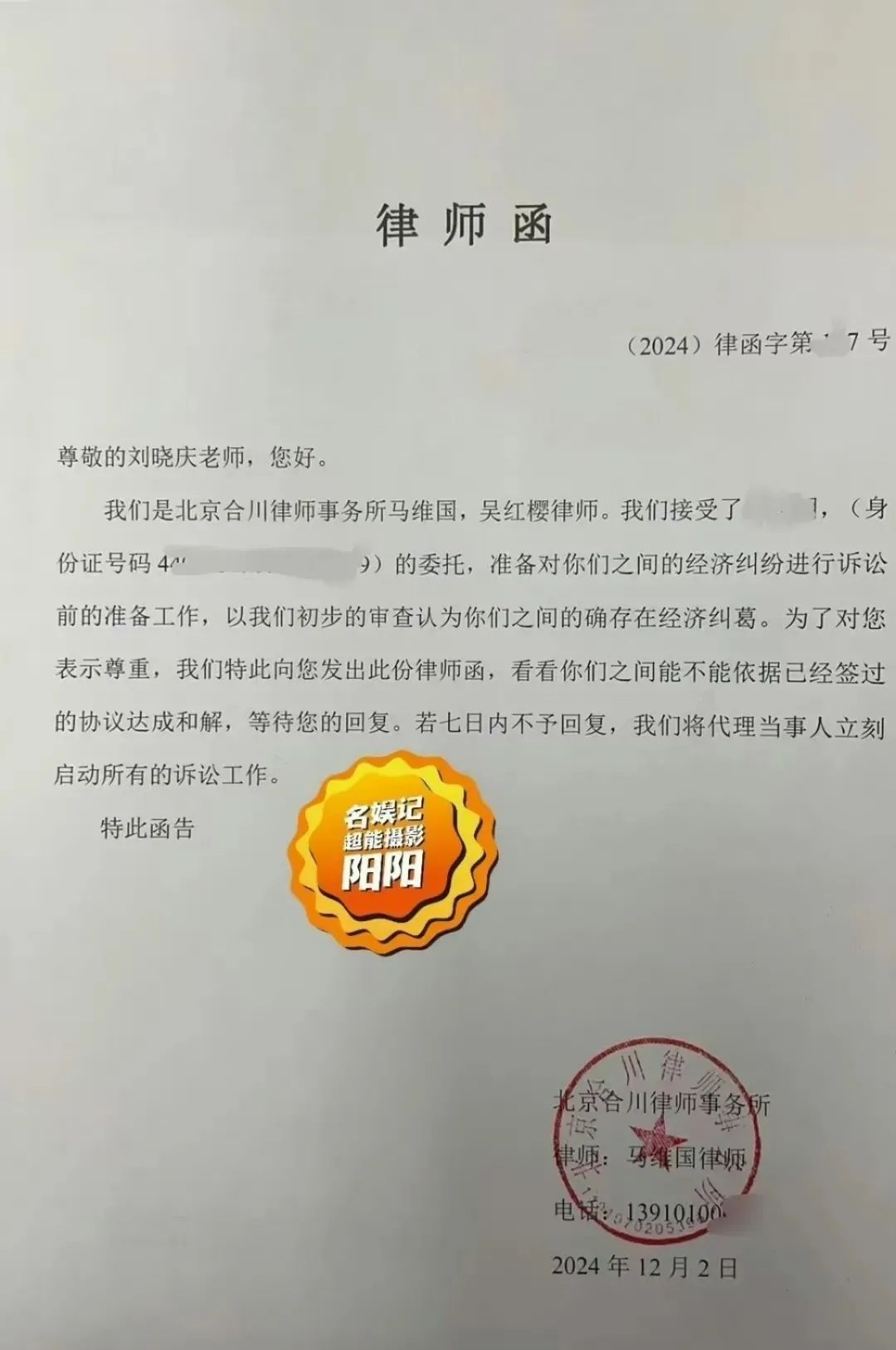 古柯向刘晓庆发了一封律师函。图/社交平台截图