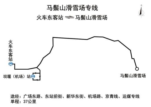 为了方便外地滑雪爱好者从机场到马鬃山滑雪场的出行需求。12月10日起,坝堰(机场)站新增了马鬃山滑雪场专线。