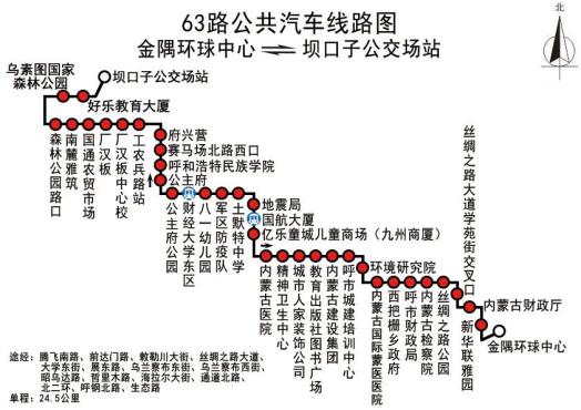 为了方便乌素图国家森林公园和好乐教育大厦周边居民的出行。从12月10日起,63路将延伸至坝口子公交站,新增乌素图国家森林公园、好乐教育大厦、坝口子公交站3站。
