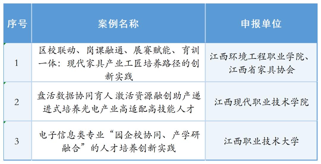 根据《关于征集产教融合、校企合作典型案例的通知》要求,教育部拟确定133个产教融合、校企合作经典案例(排名不分先后),并在各省级教育行政部门和各计划单列市教育局推荐的基础上,经资质审查、专家评议等程序。12月10日,教育部官网公布了经典案例名单,我省三所职业院校拟当选案例。↓↓↓