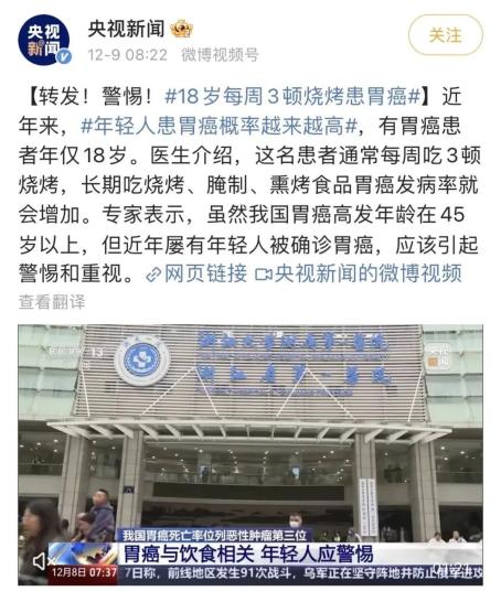 昨天,#18岁胃癌患者每周吃三个烤串#冲上热搜。近年来,年轻人被确诊为胃癌的新闻频频引起关注,值得我们警惕和关注。胃癌是一种与饮食高度相关的癌症,那么我们“吃错了”是什么呢?吃烧烤真的会致癌吗?