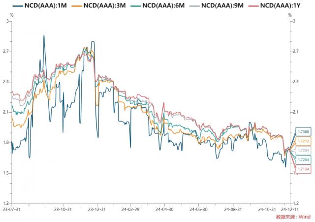 国有和主要股份制银行一年期同业存单二级最新交易在一年期 1.7134% 与前一个交易日相比,上下变化不大。