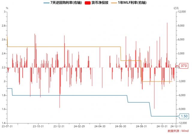 央行 12 月 11 日以固定利率、数量招标方式进行 786 亿元 7 天期逆回购操作,操作利率 1.50%。Wind 数据显示,当天 413 逆回购到期1亿元。