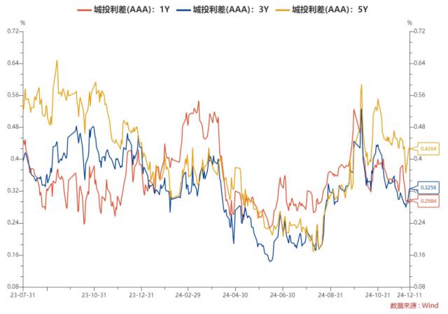 5. 最近城投债(AAA)每个期限的利差走势和数据