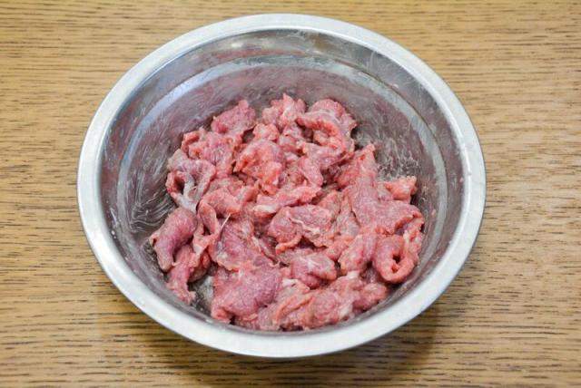 下锅前倒 5 食用油拌匀,肉片不粘连。