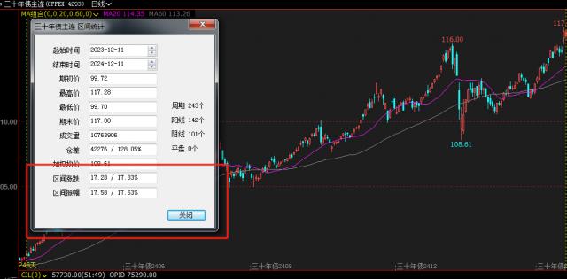 同一天,30 年期国债期货开盘走高,用阳线强行突破历史阻力位置。 116 点,站在 117 创造新的高点记录的整数关口。