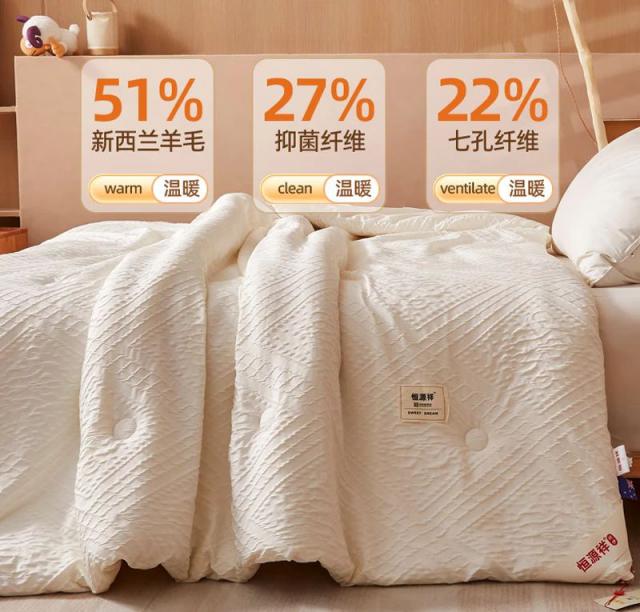 进入恒源祥羊毛被子159元,睡觉也要暖和!洋!