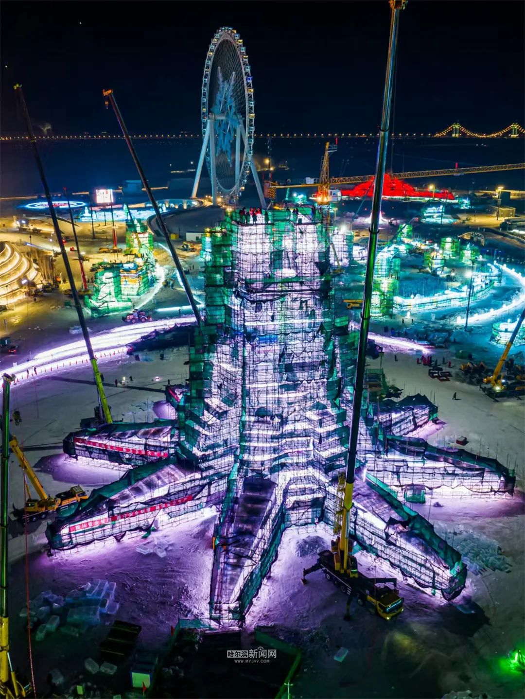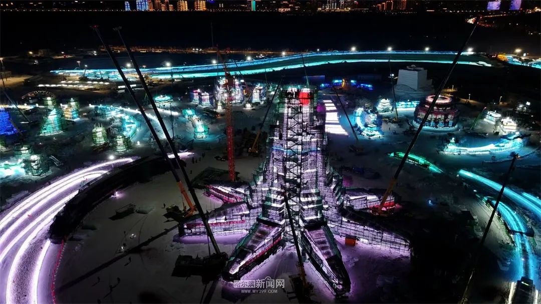 同时,公园内1万多名工作人员,如冰建工人、冰雕工人、电工、特种设备操作人员、技术人员、安全员、项目监理等。,正在紧张有序地忙碌着。从采冰、验冰、施工到照明布置,我们努力做到完美精致,努力加快各项工作的实施,确保在哈尔滨第26届冰雪世界开业迎客之日,向国内外游客呈现出无与伦比的冰雪奇观。