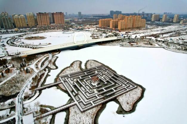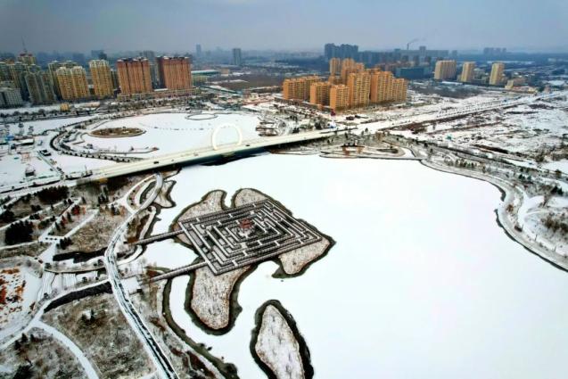 白雪把中央文化公园装扮得如梦如幻,