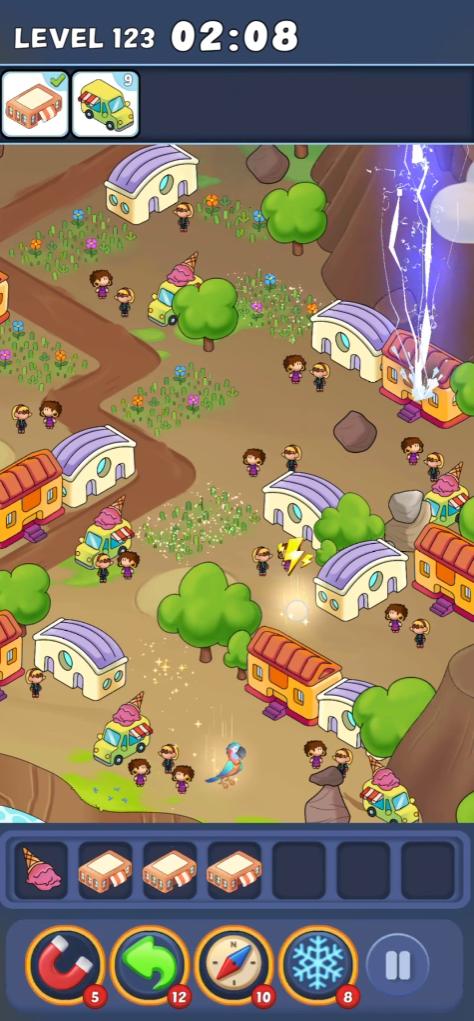 《Triple Match City》基于3D堆叠清除,融入了寻物解迷的玩法:玩家需要在一张可以随意缩放的地图上,在有限的时间内找到相同的目标对象并清除它们。随着复制难度的提高,游戏中也会出现移动云、列车等障碍物,增加了玩家点击寻找东西的难度。