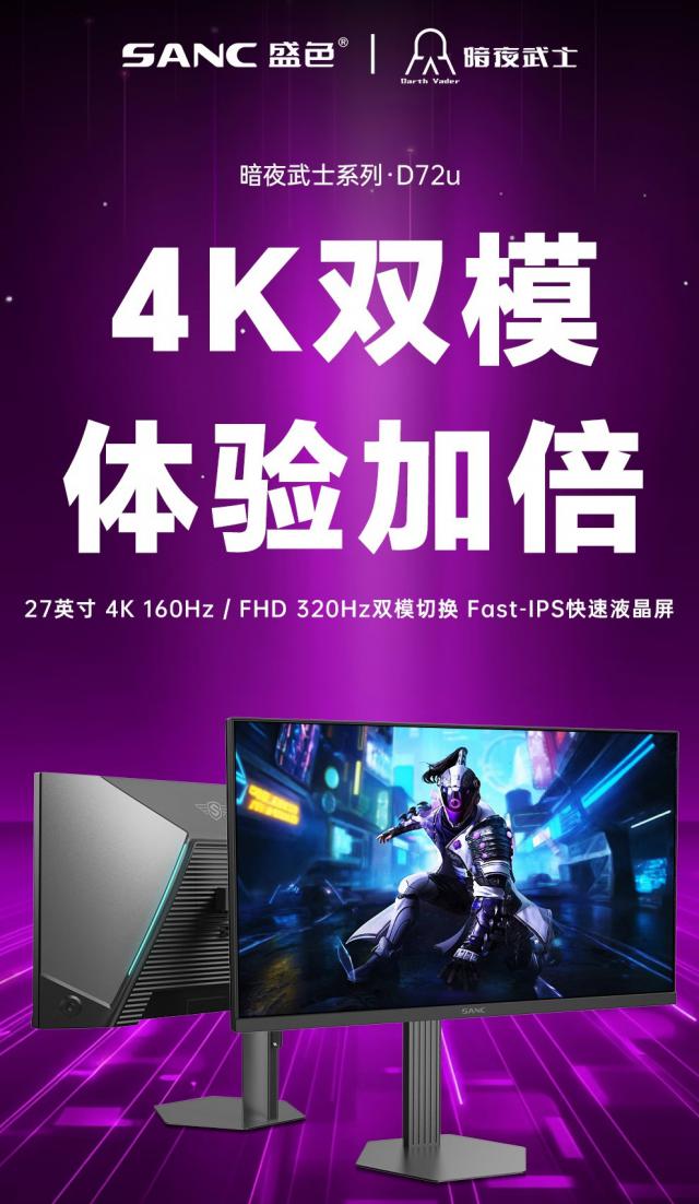 IT 世家 12 月 12 日消息,盛色 D72u 今天显示屏正式发布,将在今天正式发布。 12 月 13 每天开始发货。这个选择 Fast-IPS 支持液晶屏幕 4K 160Hz / FHD 320Hz 双模转换,定价 2099 元、首发 1599 元。