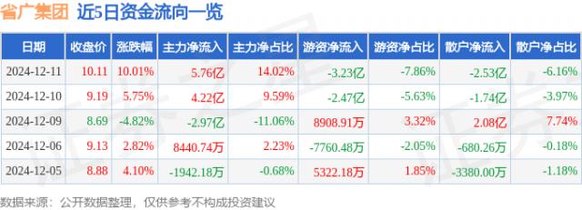 12 月 11 在日资金流入数据方面,主要资金净流入 5.76 约1约1约1亿元,约占成交额 游资资金净流出14.02% 3.23 约1约1约1亿元,约占成交额 散户资金净流出7.86% 2.53 约1约1约1亿元,约占成交额 6.16%。