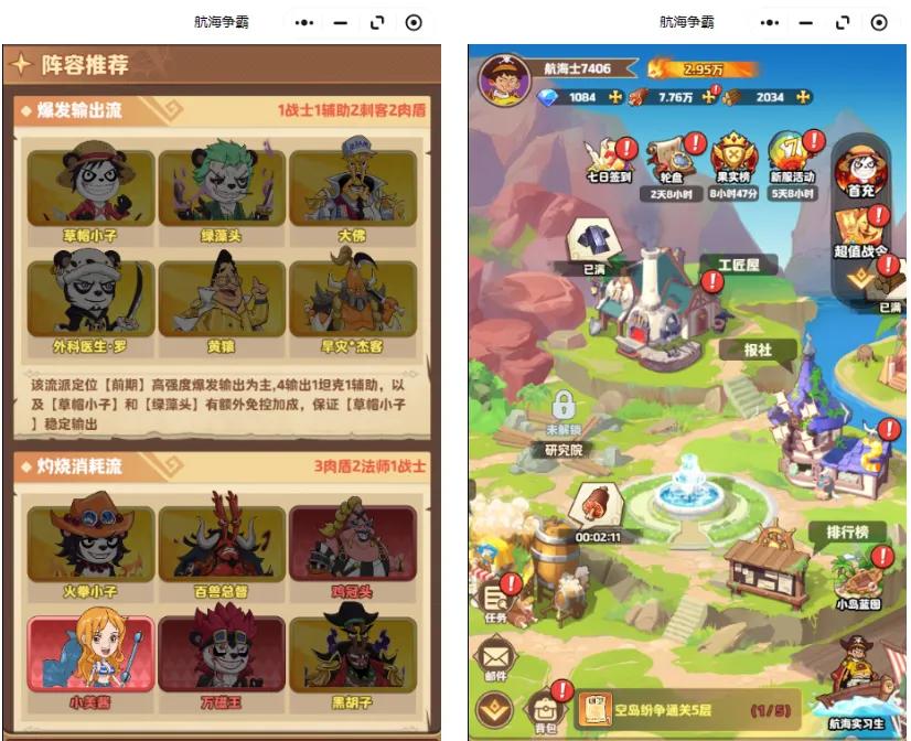 在角色设计上,游戏利用了知名的经典IP角色,如航海王和海绵宝宝,并对其进行了卡通处理。短期来看,这可能会吸引一些IP粉丝的注意力,但从长远来看,很难形成自己的核心竞争优势,未来的表现还有待观察。