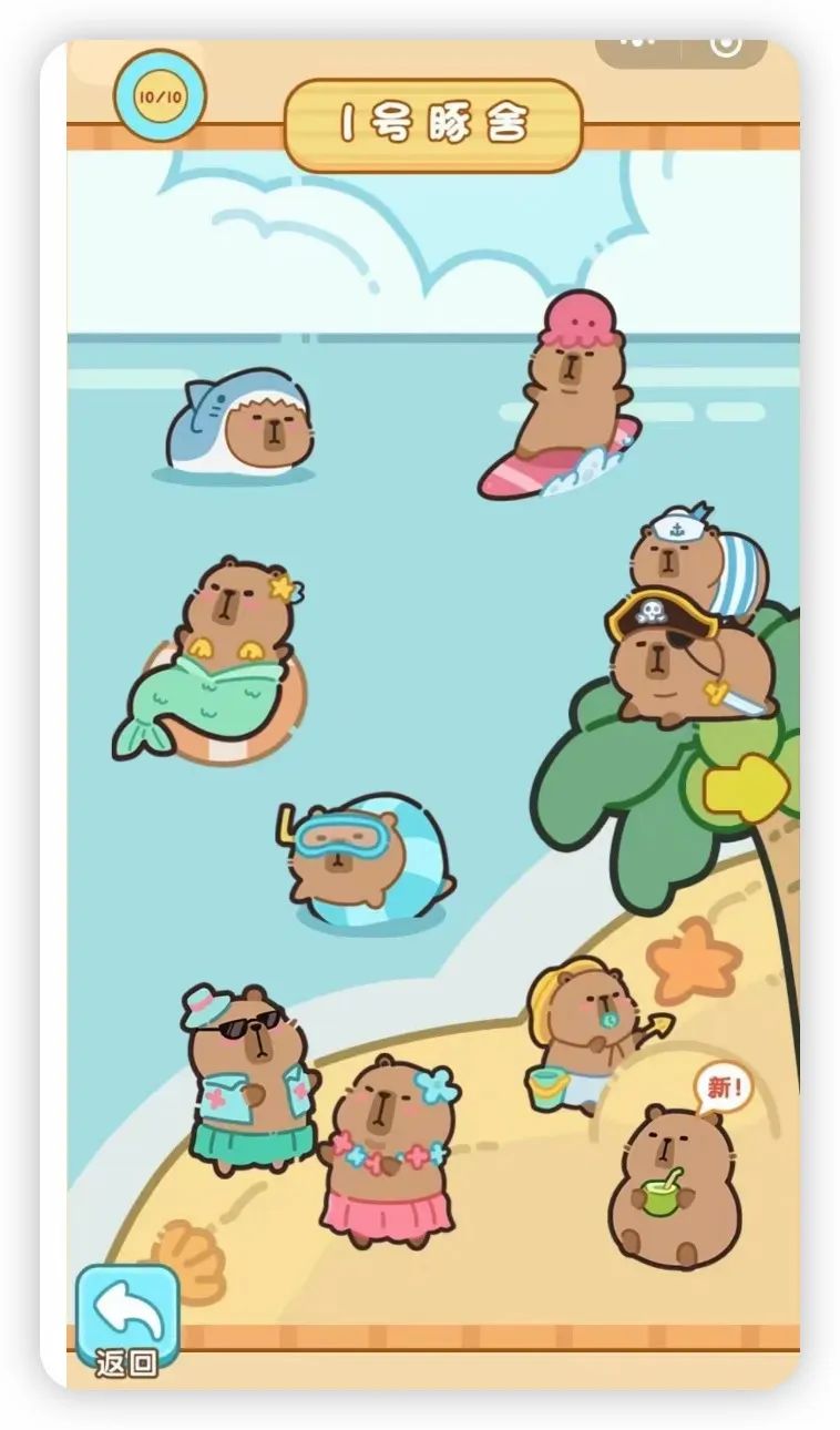 该产品以最近在全网流行的“卡皮巴拉”形象为卖点,包括清除和“拧螺丝”元素。玩家需要派出小动物,按照箭头指示操作,解锁副本。