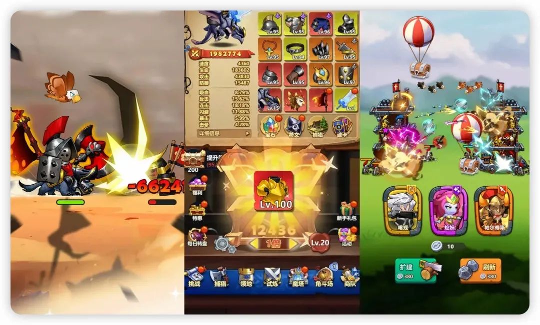 多角色卡牌战斗,以及丰富的模拟发展游戏,不仅带来了强烈刺激的数值战斗力增长,也对应了SLG城市建设和抵抗部分的目标体验,让玩家产生了双向增长动力。