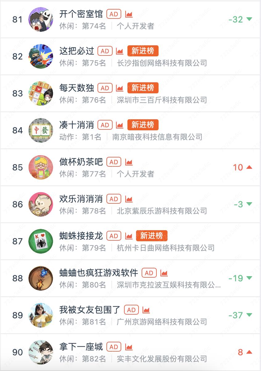 其中,《一只羊》继续占据榜首;“打螺丝”游戏《疯狂解压》和《无敌螺丝王》头部位置稳定;与10月份相比,三消品类“抓鹅”增加了一个位置。