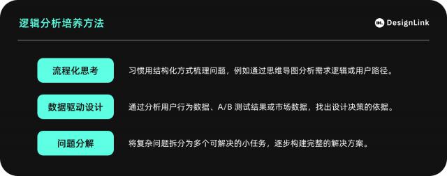 逻辑分析能力是产品设计的基础,帮助设计师用理性思维拆解复杂问题,找出核心差异,提出解决方案。培养逻辑分析能力的关键在于: