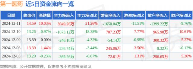 12 月 11 在日资金流入数据方面,主要资金净流入 3049.26 一万元左右,约占成交额 游资资金净流出21.26% 1650.04 一万元左右,约占成交额 散户资金净流出11.51% 1399.22 一万元左右,约占成交额 9.76%。