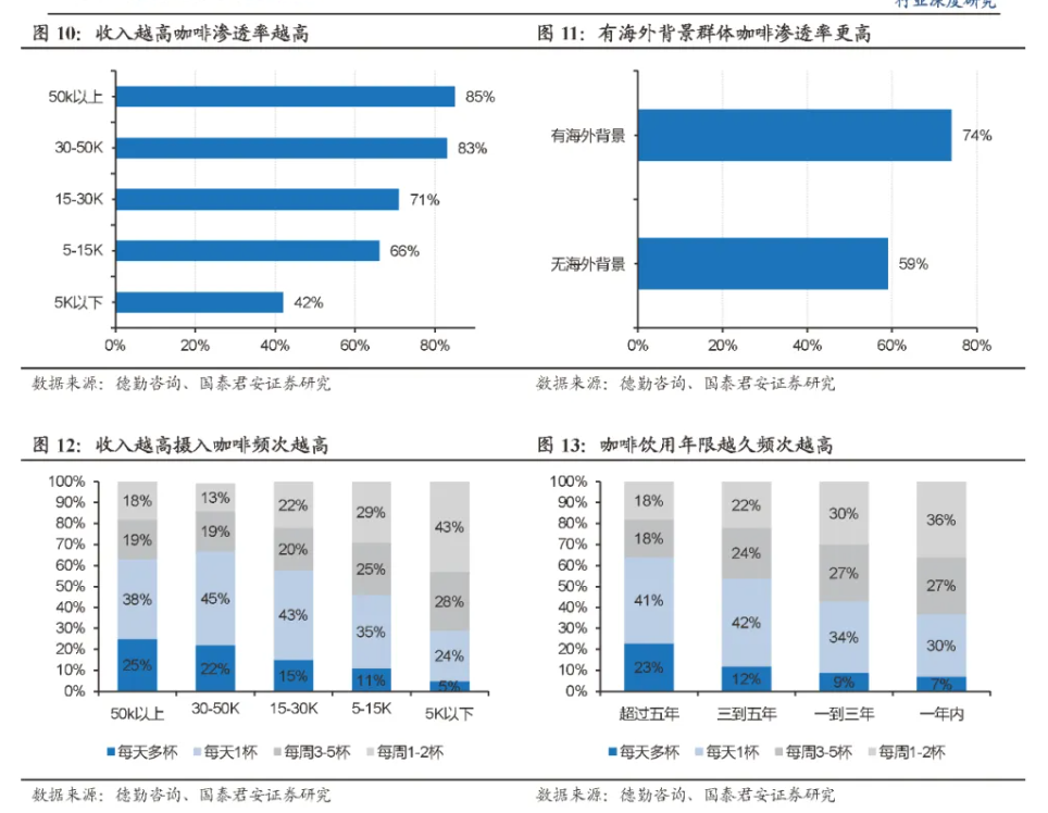 可以预见,下沉市场不可避免地会出现新的价格战,难度远大于一线城市——收入越高,咖啡渗透率越高,咖啡摄入频率越高,使用寿命越长。····