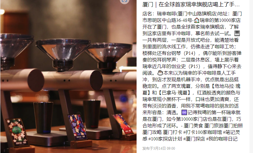 能看到,为了建造「高级感」,瑞幸做了很多功课: