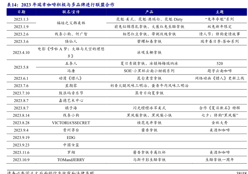 值得注意的是,许多茶和咖啡联名仍然停留在许多茶和咖啡中。「贴牌」在这个阶段,瑞幸将风味与代言人/IP 进行更深入的结合,除了借势推出许多新产品外,还进一步增加了外界对瑞幸品牌的认知和感知。