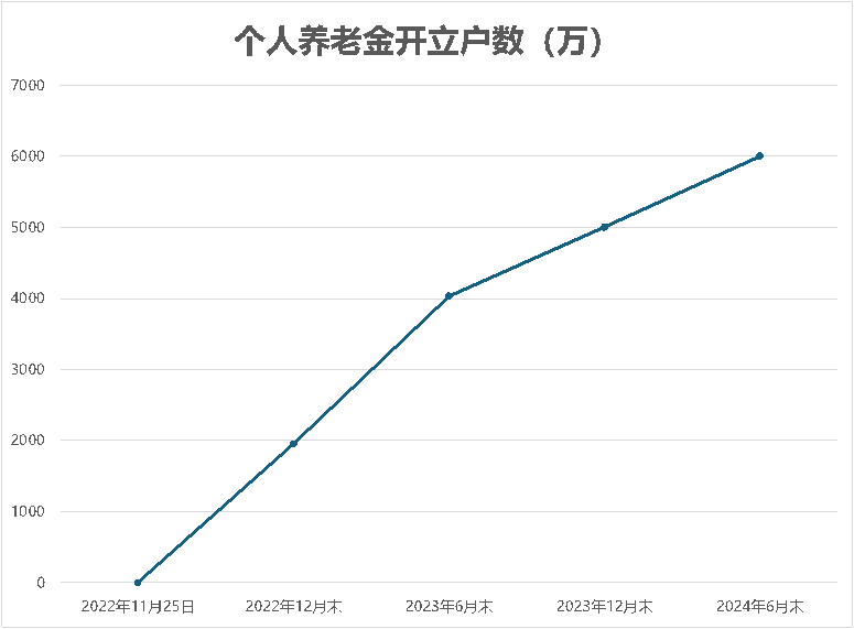 目前业界对个人养老金试点情况的普遍评价是“开户人数超预期”。从2022年11月25日公布36个城市(地区)试点名单开始,到2023年6月底,不到一年,设立个人养老金账户的人数就达到了4030万。然而,此后,开户速度明显放缓——到2024年6月底,全国各地设立个人养老金账户的人数超过6000万,比一年前增加了约1970万。