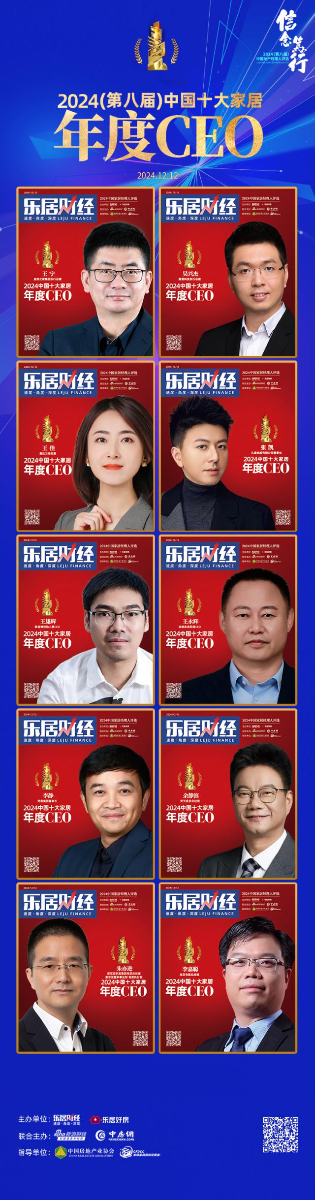 乐居财经 12 月 12 2024年(第八届)中国房地产经理人评比荣誉发布会举行,“ 2024 中国十大家居年度 CEO “名单公布了。