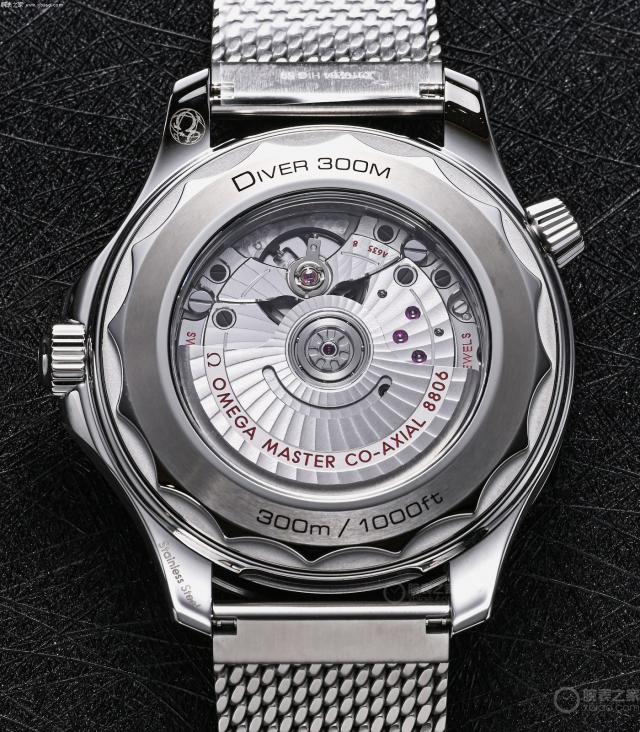 其它方面,在表壳、机芯上,两只新的“无历”海马。 300 米饭,就像常规款一样,都是 42 mm,由于使用了向上凸起的“泡泡镜”,厚度略有增加,可以忽略不计(表壳) 10 点位,是排氦阀)。运动,使用欧米茄 8806 自动机芯(8800 无历版)。8800 大家都很熟悉这一系列的运动。使用欧米茄特有的同轴擒纵、硅游丝、无卡重量微调摆陀、摆频 25200、动力 55 小时。每天都有至臻天文台认证和偏差。 0/ 5 秒,抗磁 15000 高斯。欧米茄机芯的装饰特点是从机芯中心向四周扩散的阿拉伯风格日内瓦图案。