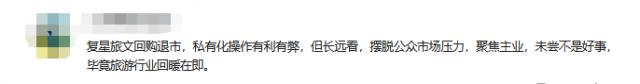 针对市场讨论,复星旅文回应称,本次私有化提案是基于复星旅文长远发展战略的关键决策。私有化结束后,复星旅文将继续维持现有业务的正常运营。目前,私有化结束后,公司整体运营尚未得到重大调整,员工的聘用和福利待遇将保持一致。