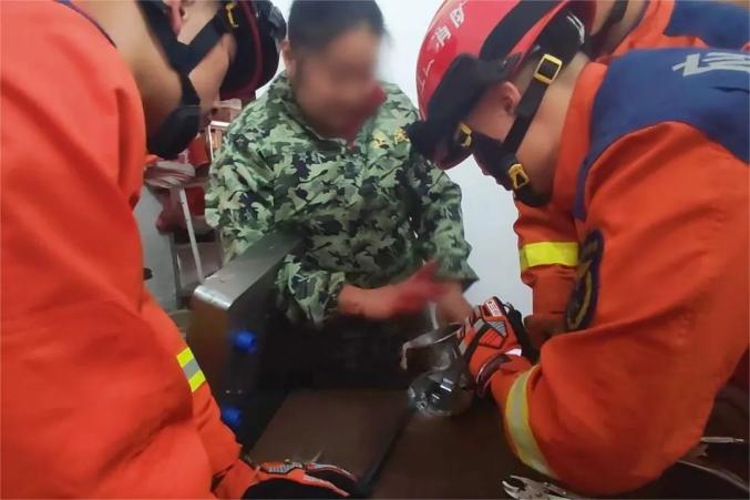 在安抚女性情绪的同时,消防员安抚女性情绪
