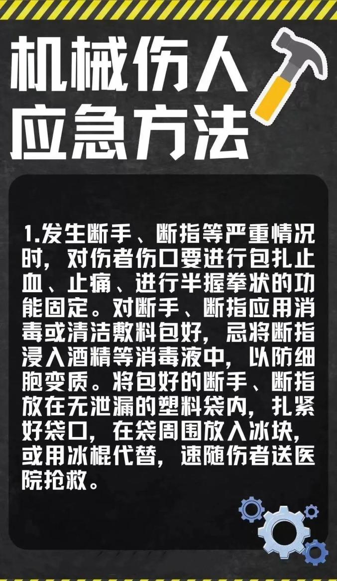 机械损伤是指挤压、撞击、冲击、切割、切割、卷入、绞绕、甩出、切割、断开、刺痛等。由机械设备运动(静止)时和零件、工具和加工件直接与人体接触造成的,不包括车辆和起重机造成的损坏。