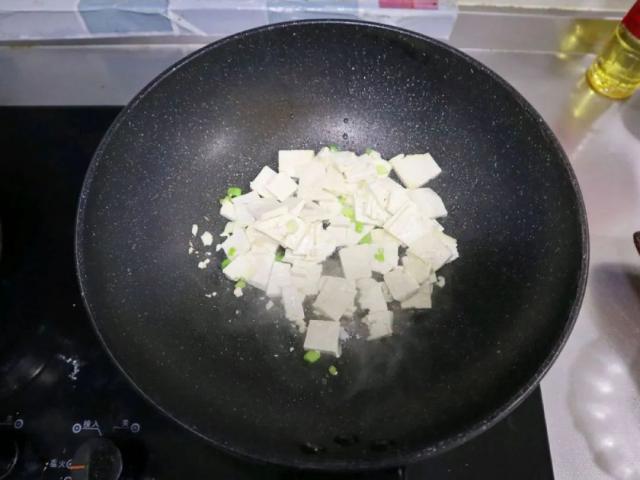 将豆腐炒熟 1 分钟。