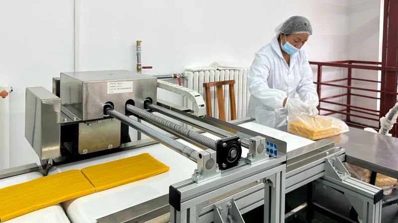 在安家堡乡张贵屯村的蒙根玉米面加工厂,生产线上的工人们在流水线旁有条不紊地工作。经过成熟、干燥、切割、包装等多个过程,一根玉米以玉米面的形式“美丽蜕变”。村干部介绍,这里生产的玉米面采用当地优质玉米加工而成,每天生产能力达到1000斤。该加工厂于2024年5月开工建设,10月开工投产,完成了最初的建设,最初的投产,最初的效果。
