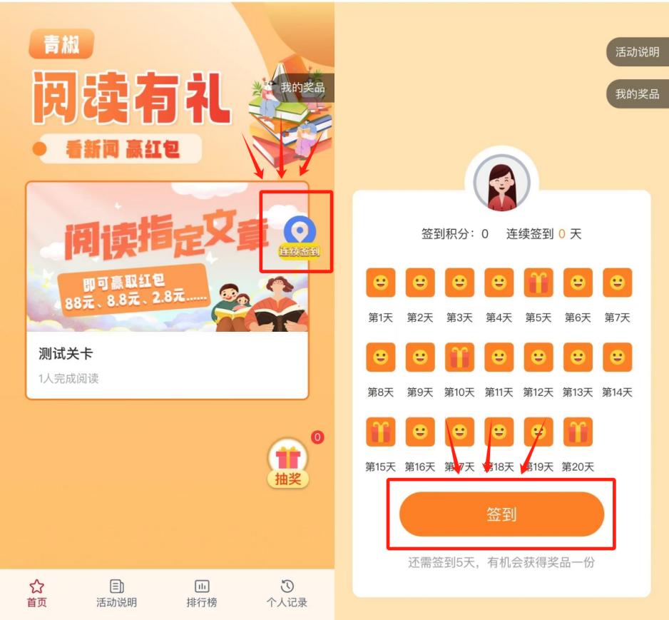 进入青椒客户端首页,点击“阅读礼貌”,进入活动区。