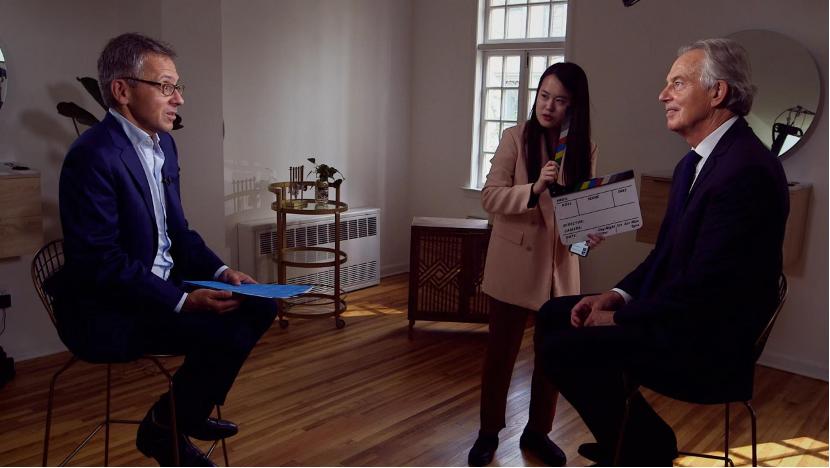 (武子毓记者工作照左:欧亚集团总裁和创始人伊恩·布兰默。右:前英国总统托尼布莱尔)