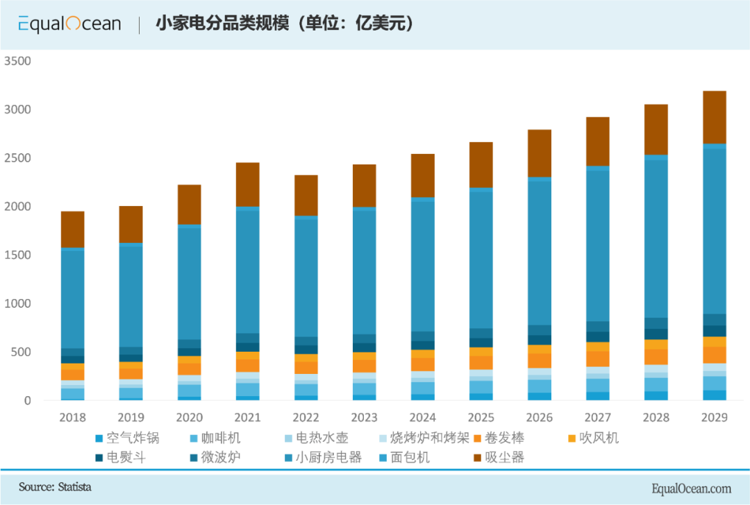 小型电器虽然“小”,但却是一个快速发展的新兴产业。Statista商业数据机构预测,2024年全球小型电器市场规模将达到2543亿美元,在这个1000亿美元的市场中仍将出现商机。