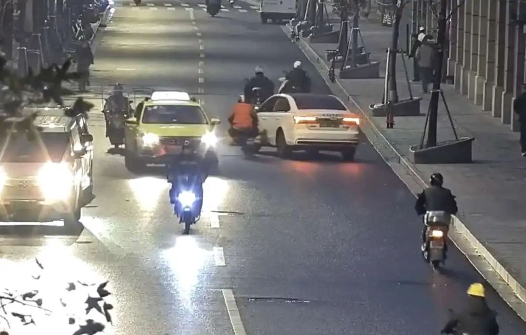 公共视频显示,昨天17点左右,一辆白色轿车试图在街上掉头。这时,虽然后面的电动自行车已经试图避开了,但由于汽车突然不断的掉头动作,不幸被卷入了车底。在这个危机时刻,刚刚完成护校任务的小东门派出所民警发现了这一危险,立即停下来,上前检查。