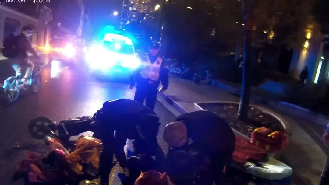 黄浦公安局小东门派出所民警施伟骏回忆说:“到达现场时,路上有一滩血迹,电动车司机的牙齿也落地了。情况非常紧急。”